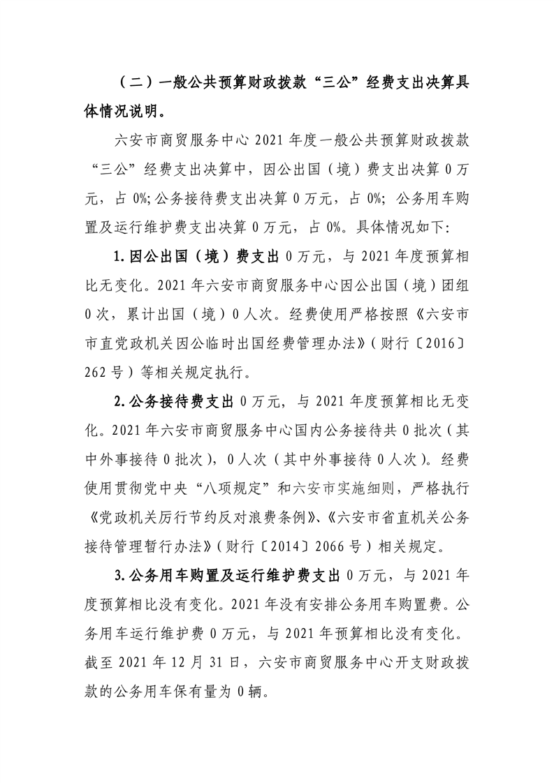 六安市商贸服务中心2021年度一般公共预算财政拨款“三公”经费支出决算