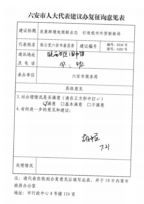 六安市商务局关于市政协六届一次会议第282号提案的答复
