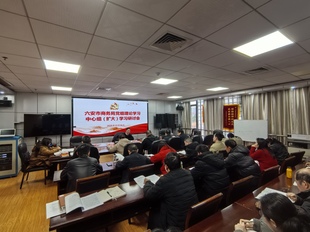 12月26日,市商务局召开党组理论学习中心组(扩大)学习研讨会,全体干部职工参加会议。