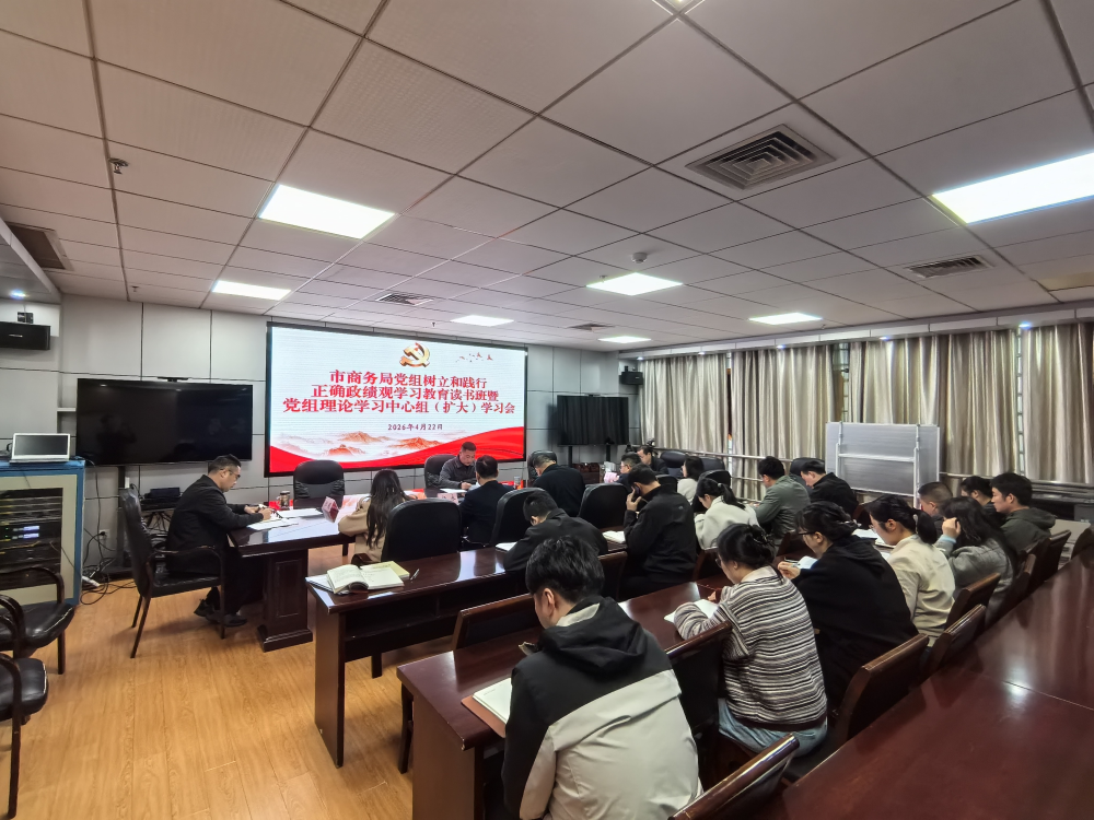 4月21日至4月22日,市商务局举办树立和践行正确政绩观学习教育第二期读书班暨党组理论学习中心组(扩大)学习会,市商务局党组书记、局长周泽道主持会议并讲话,局领导班子成员、处级以上干部、局机关各科室及局属单位负责人参加会议。
